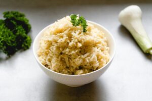 - Wenn du die Mahlzeit zum Mitnehmen vorbereiten möchtest (Meal Prep), bewahre den Reis und den Joghurt getrennt voneinander auf.